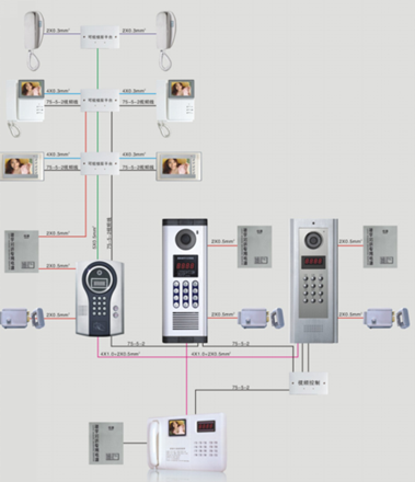 楼宇对讲系统由对讲管理主机、大门口主机、门口主机、用户分机、电控门锁等相关设备组成。访客对讲系统分为可视、非可视、可视与非可视混合、单户型、单元型和联网型等。