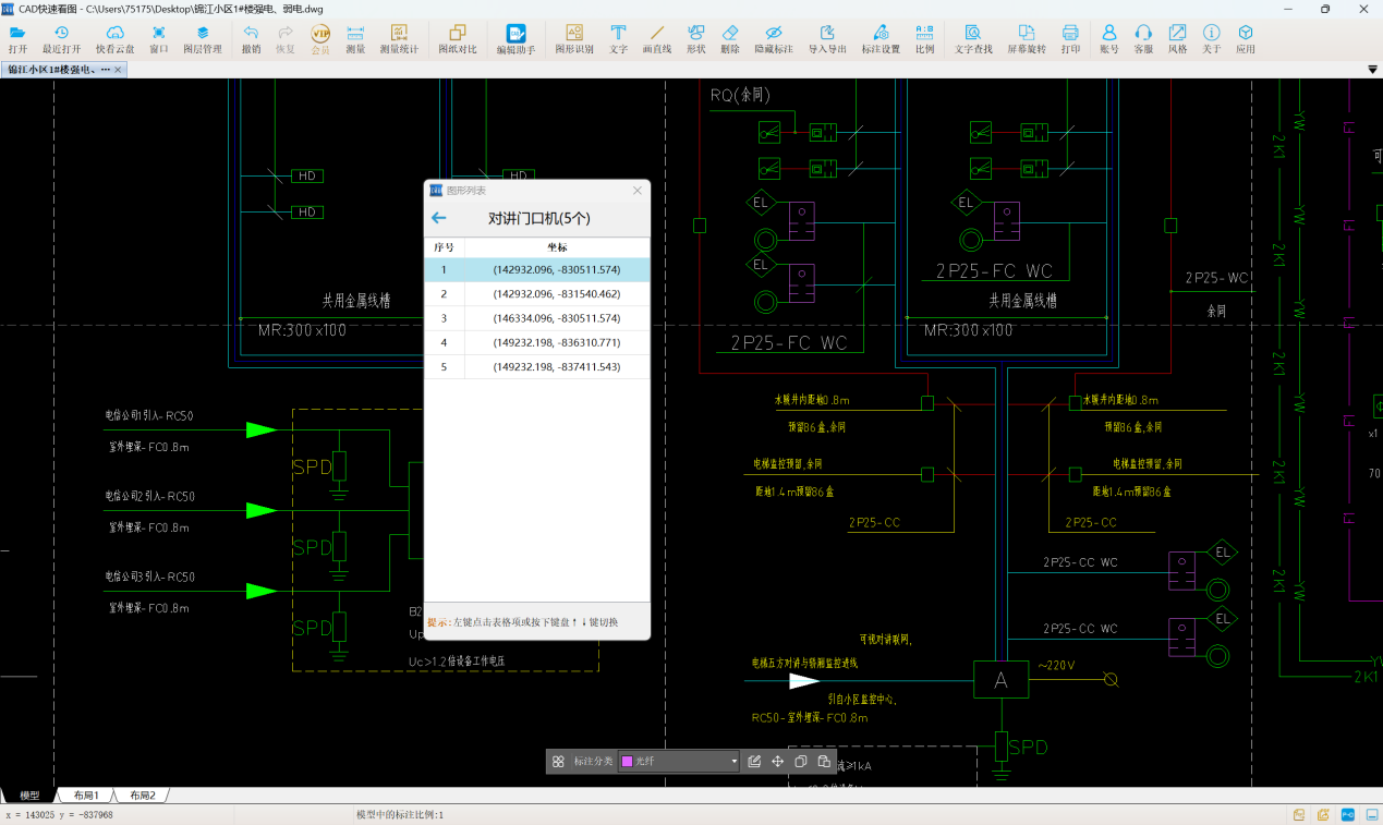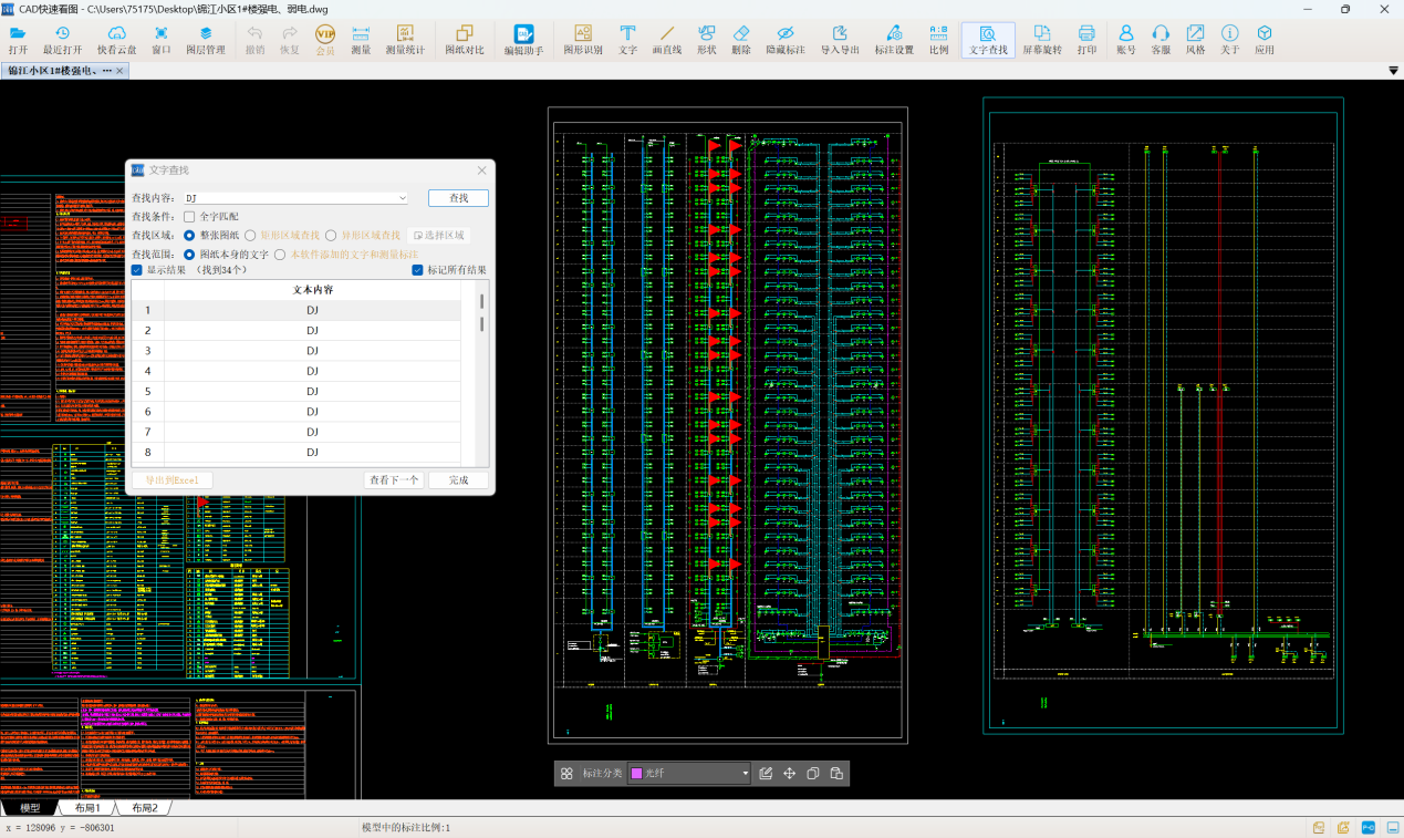 楼宇对讲系统包含多种器具,用CAD快速看图软件算楼宇对讲分支箱工程量太省事了!它的“文字查找”和“图形识别”功能超强大,能自动统计数量,再也不用手动数啦,超快超准!