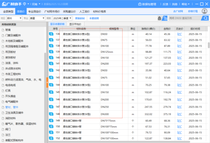 清晰柔性铸铁排水管A型、B型、W型区别,实际工程中结合CAD快速看图的连续测量功能测取工程量非常方便