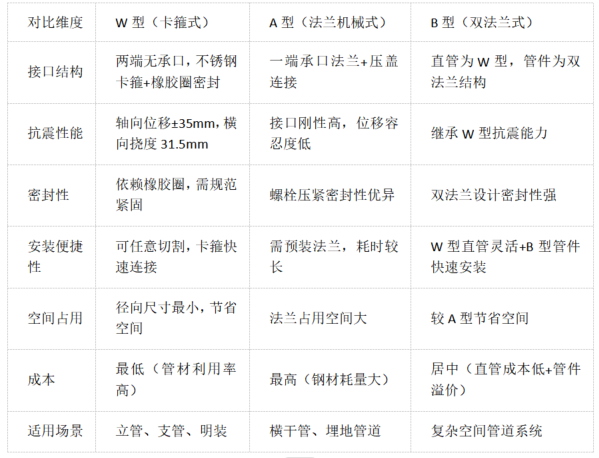 2、强度刚需:A型(关键承压部位,如首层排水干管);