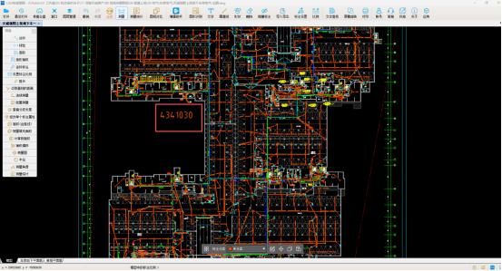 4、触发批量测量命令,首先选择线段,然后勾选按已选线段的图层过滤,框选整张CAD图纸,即可识别出来信号线FS工程量,如下图所示。