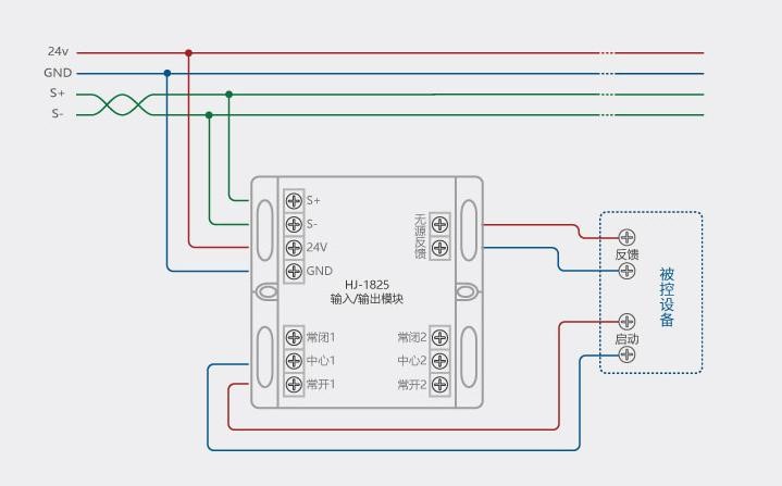 (2)无源输出控制模块。无源输出控制模块只是输出开关量信号,一般适用于卷帘门、电梯迫降。