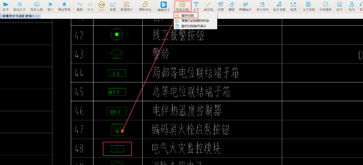 火灾报警系统中消防模块工程量计算,可以用CAD快速看图的【图形识别】快速图例匹配和统计能力,成为电气工程量计量的有力助手。特别适用于消火模块、探测器、按钮等高重复性设备的统计工作,能够显著提高消防模块的工作效率。