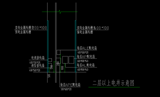 由二层以上电井示意图得竖向线槽工程量为4m(楼层高度)。
