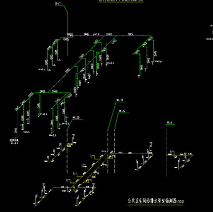 1.本案例以公共卫生间给水管为例,观察施工图设计说明、公共卫生间给排水管道轴测图和公共卫生间平面放大图,已知给水管管材为PP-R管,管道压力等级为S4,连接采用热熔连接。