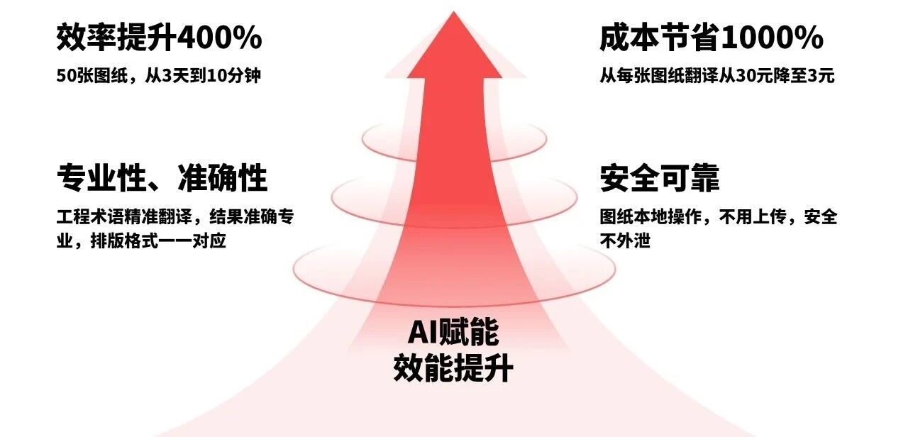 50张图纸,从3天到10分钟,效率提升400%。从每张图纸翻译从30元降至3元,成本节省1000%+。工程术语精准翻译,结果准确专业。100%本地处理,图纸安全不外泄。