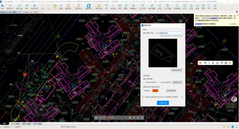2、使用CAD快速看图的图形识别功能,计算高空抛物摄像机工程量,触发图形识别功能,框选高空抛物摄像机图例,输入相关信息后,如下图所示。