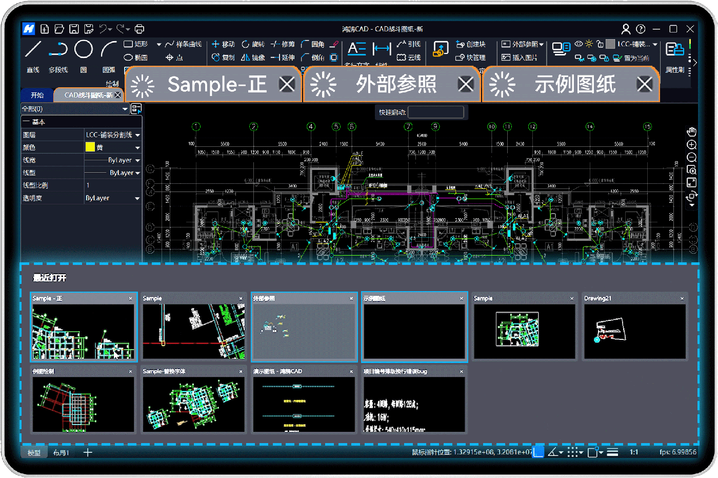 当你需要同时处理多个图纸时,鸿鹄CAD的异步打开功能简直爽翻天!可以同时打开多张图纸,切换自如,再也不用等这张关掉才能开下一张。