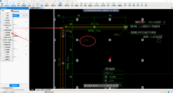 3、触发测量统计命令,选择标注颜色进行过滤,分别查看两个规格风管长度,1000*320风管长度为16.613m,因风管长度不包含风管部件所占长度,因此1000*320风管长度为16.313m;1250*320风管长度为13.152米