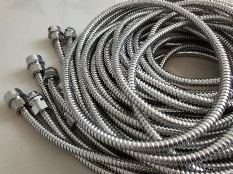 (8)金属软管:又称蛇皮管,一般敷设在较小型电动机的接线盒与钢管口的连接处,用来保护电缆或导线不受机械损伤。