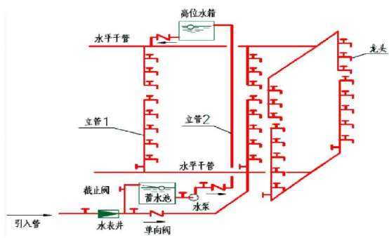 (2)立管:即竖向立管,通常位于水暖井中,负责向各楼层输送水源。