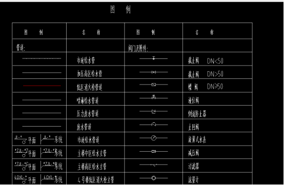 我们打开案例图纸,本案例是个地下车库图纸,我们先看下阀门的设计图例,有个更直观的认识