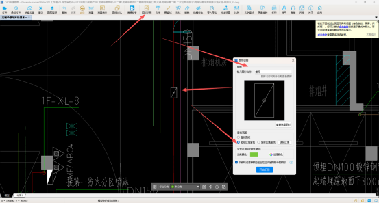 以蝶阀为例,计算阀门工程量,使用CAD快速看图的图形识别功能,框选图例后,输入下图所示信息,框选平面图范围。点击开始识别,即可识别出来闸阀的工程量。