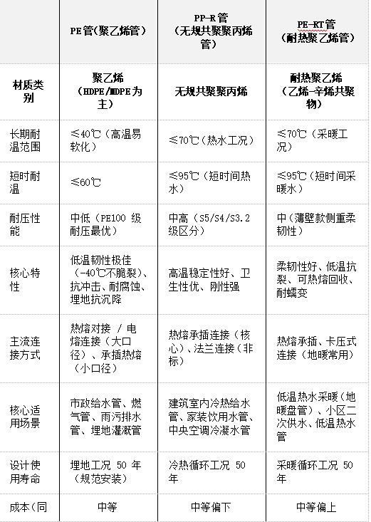 给水管材工程量计算,常见PE管,PP-R管,PE-RT管对比分析