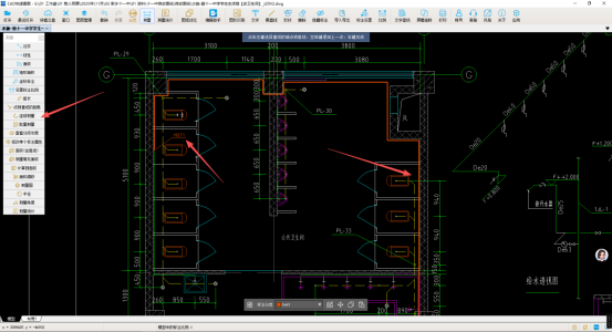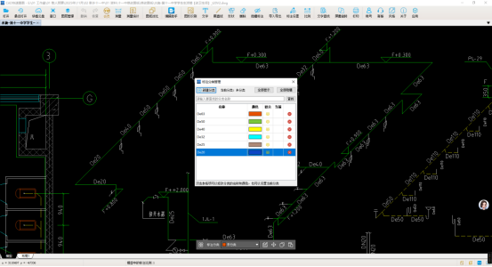 左上角公共卫生间里面有多个规格管道,卫生间支管材质常用为PP-R管,我们在计算开始之前,结合CAD快速看图的标注分类功能,对于管道规格进行分类。