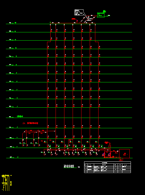 1.观察屋顶层给排水平面图及消火栓系统图,可见消火栓给水管道采用热浸镀锌钢管,通过法兰或沟槽连接,包含DN150、DN100两种规格。