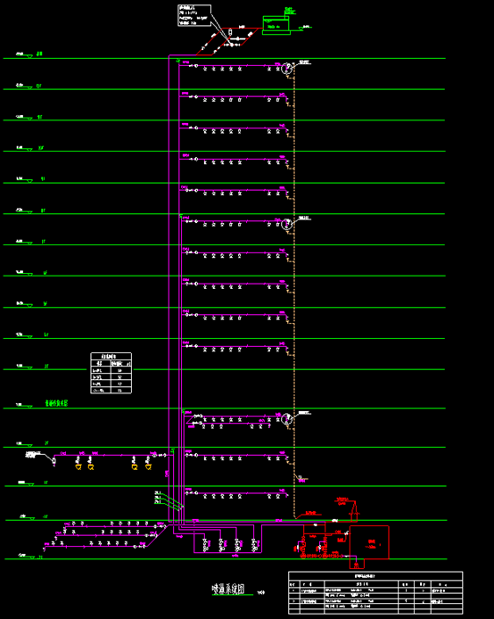 如图所示,自动喷水管采用内外壁热浸镀锌钢管,丝扣或沟槽式接口。