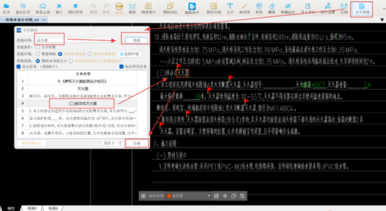 2. 计量灭火器时,需明确具体说明以确定其形式及规格型号。使用CAD快速看图中【文字查找】功能仅需输入关键词“灭火器”,设定查找范围为设计说明,即可迅速定位相关具体内容,极大节省时间。