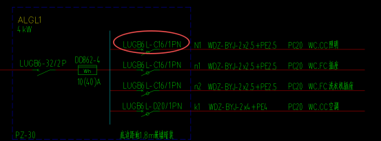首先,我们看下下面的图纸,下图是一个配电箱系统图,上面标注了各种各样的配点箱元器件,包含微型断路器,电表等。