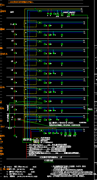 竖向配管:(3(楼层高度)-2.2(层消防接线箱离地高度)-0.305(层消防接线箱高度))+(3(楼层高度)-1.3(带电话插孔的手动报警按钮安装高度))+(3(楼层高度)-1.6(消火栓起泵按钮安装高度))=3.595m