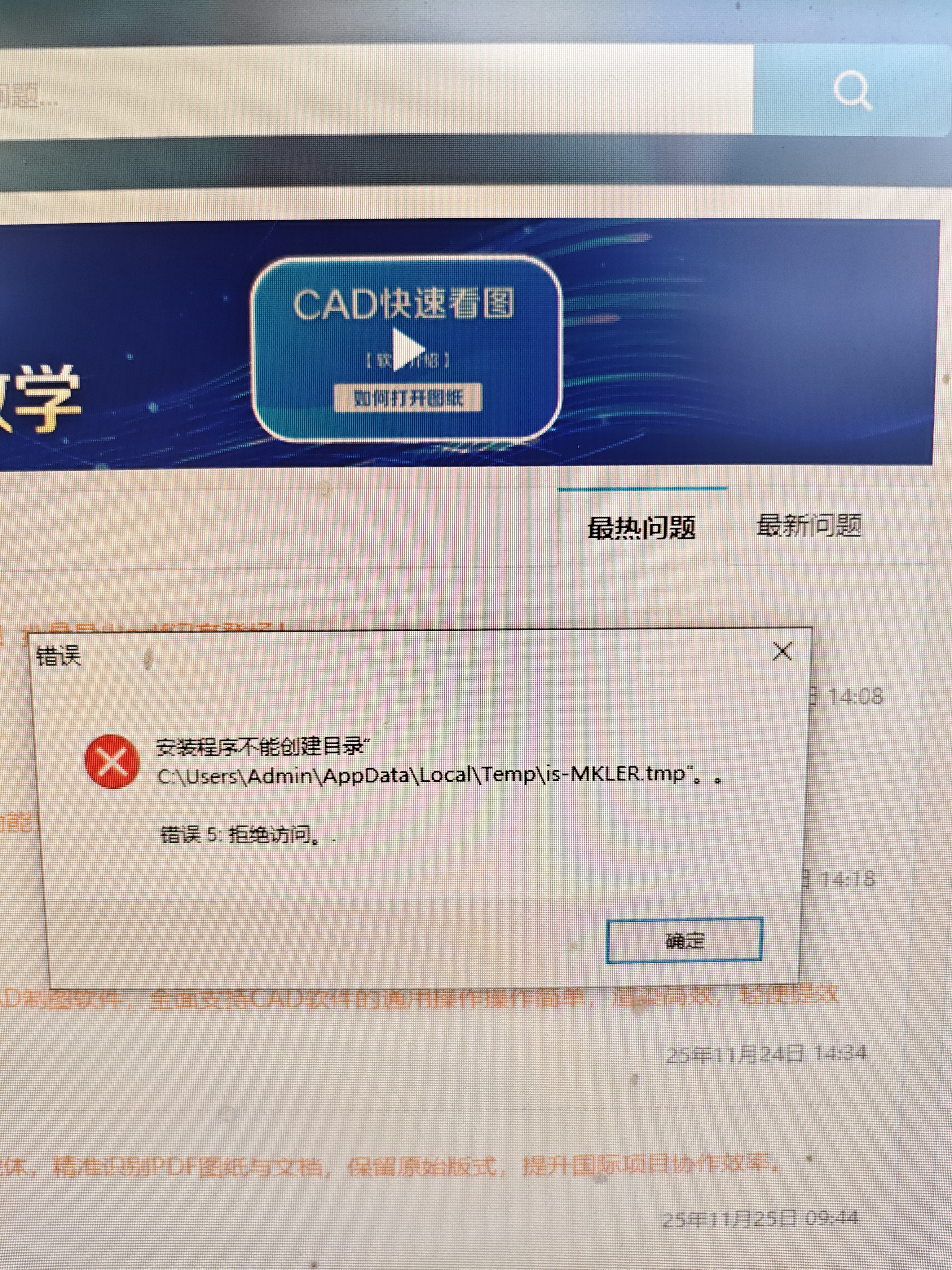 电脑安装时安装程序不能创建目录