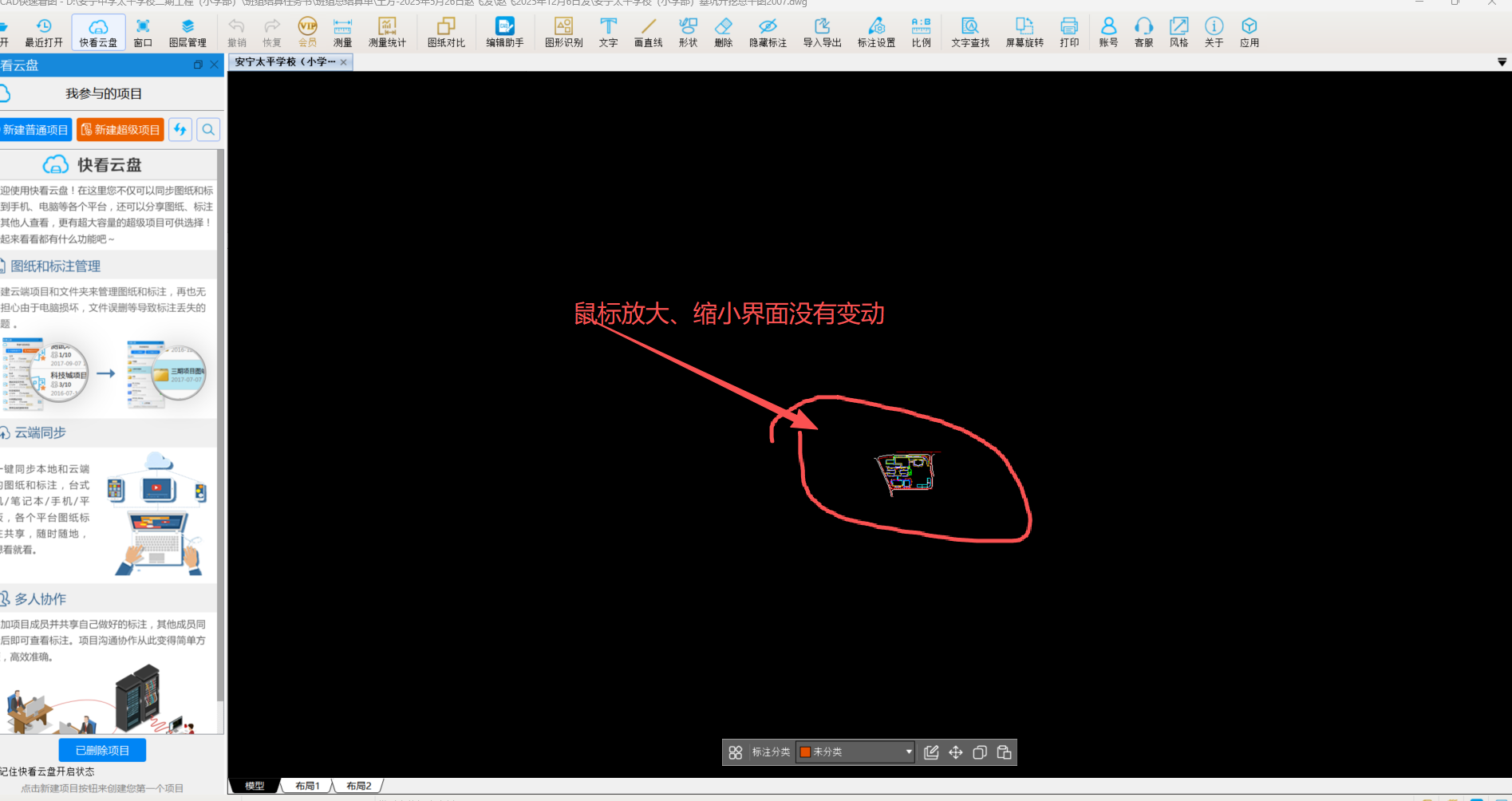 快速看图软件打开工程后,鼠标滚动放大缩小工程界面没有反应