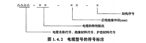 我国对电缆型号的符号标注由四部分组成,如图1.4.2所示。