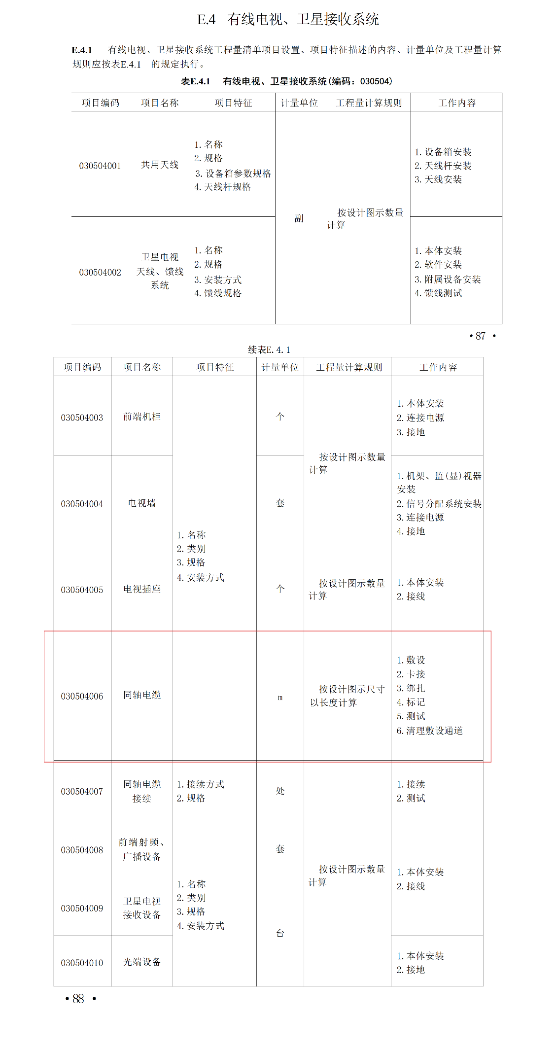 同轴电缆工程量计量