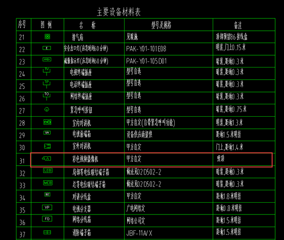 4.对于竖向同轴电缆,因彩色视频摄像机吸顶安装无需竖向布线,电井处同轴电缆沿桥架延伸至负一层,按一层层高3米计算,故竖向同轴电缆长度为3米乘以3根,总计9米。