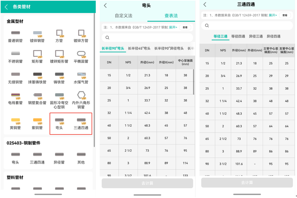 - 三通四通数据:新增各类三通四通的规格数据以及计算公式。