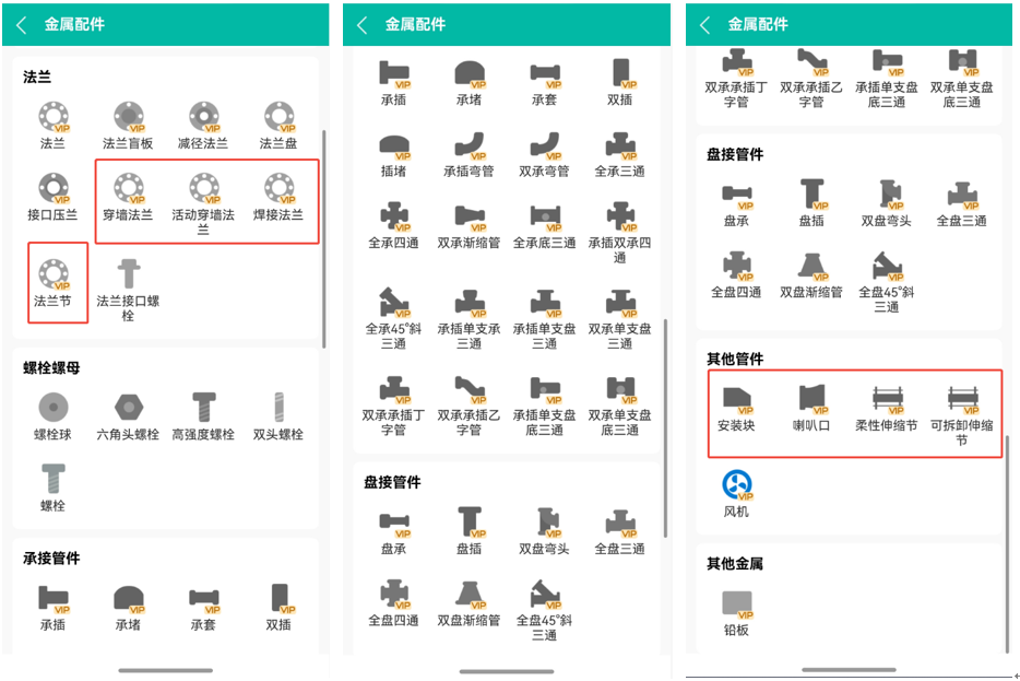 - 法兰、承接管件、盘接管件、其他管件:新增各类法兰、承接管件、盘接管件以及安装块、喇叭口、伸缩节的重量和规格数据。