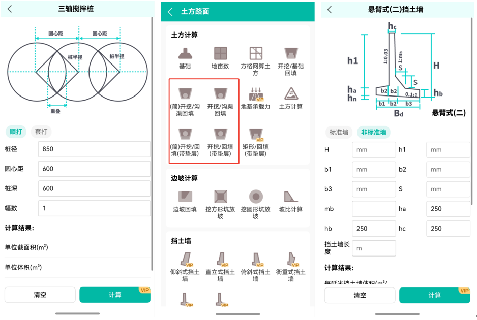 - 三轴搅拌桩:新增“套打”计算公式,满足顺打和套打不同情景的计算规则。