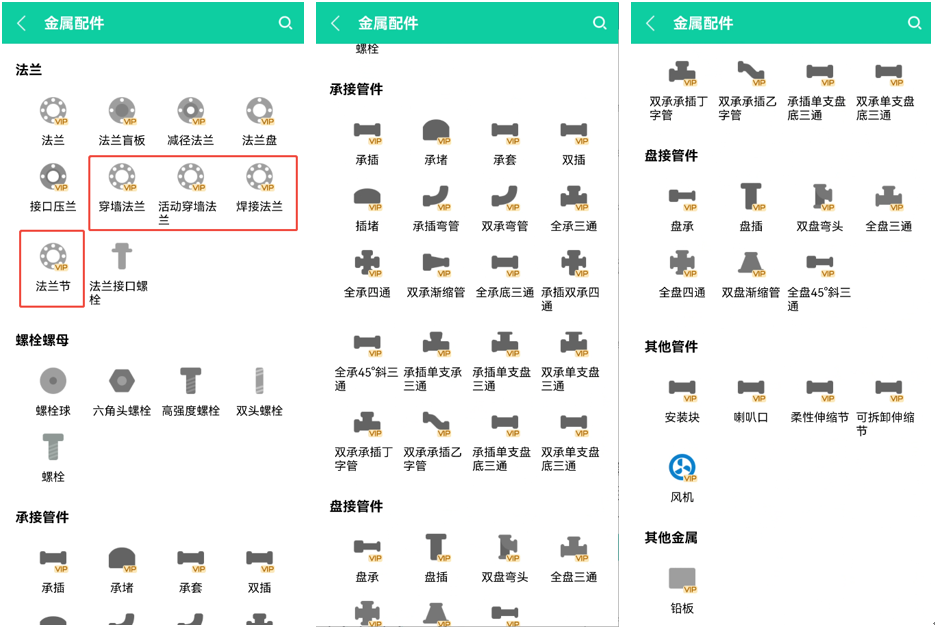 - 法兰、承接管件、盘接管件、其他管件:新增各类法兰、承接管件、盘接管件以及安装块、喇叭口、伸缩节的重量和规格数据。