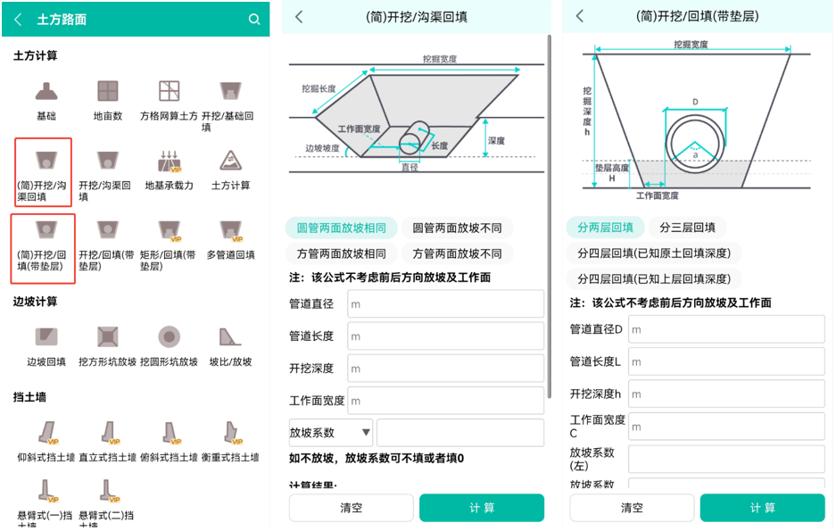 - 开挖/沟渠回填:新增沟渠回填的计算公式,满足四面不同放坡角度的情景。