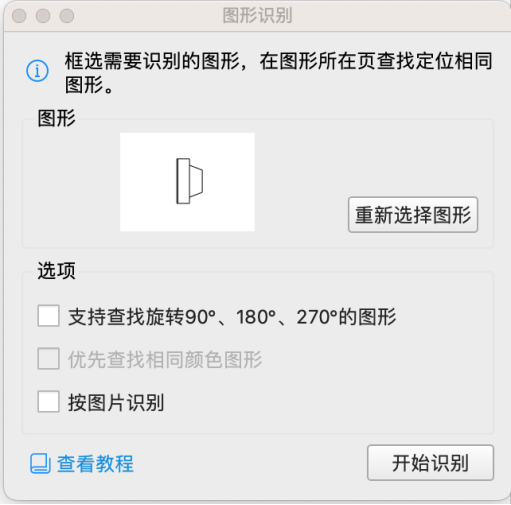 (2)目前仅支持识别查找当前页的相同或相似的图形,不支持跨页识别查找;