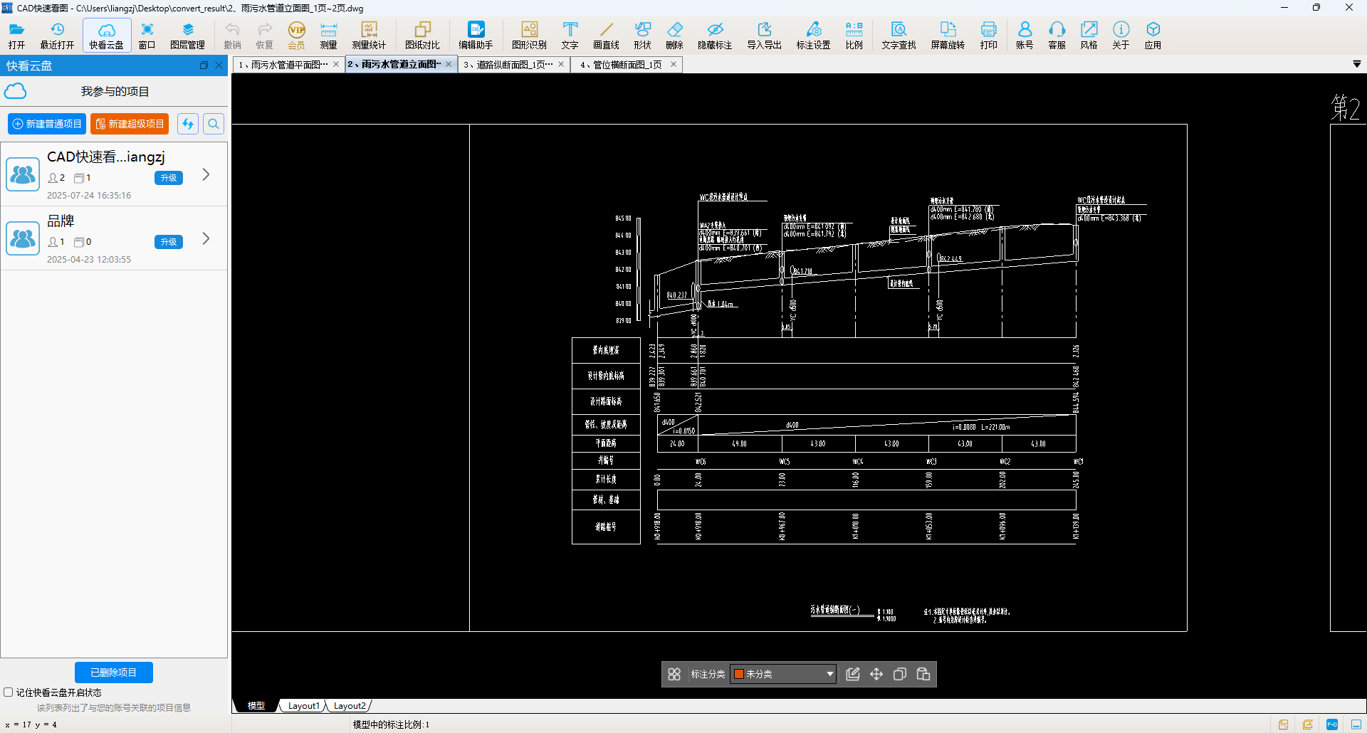转换在瞬间完成。在指定的文件夹中找到了可直接使用的综合管网图.dwg文件。