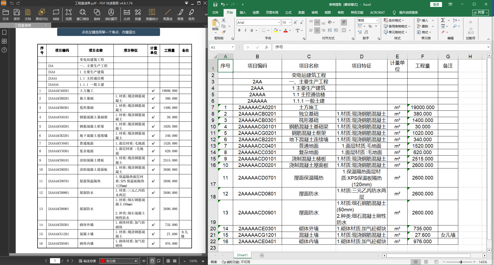 下面,我们通过一个建筑分部分项工程量清单表格提取的完整操作流程来演示一下: