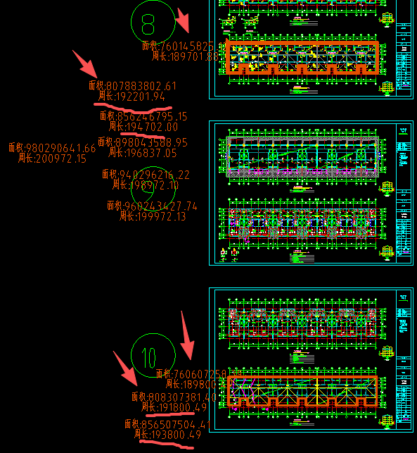 在梁图和板图中测量时,面积稍微不一致,可能是图纸的偏差,偏移命令后,面积增大,周长却变小