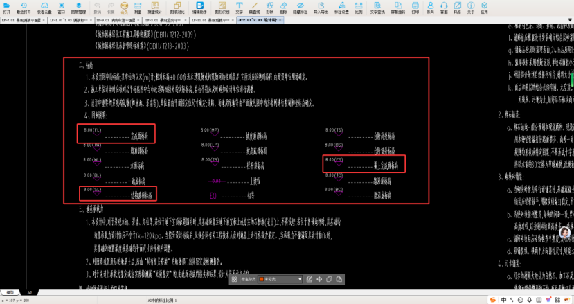 1、设计说明中所列标高,在计算铺装面工程量的时候,主要涉及FL:完成面标高,SL:结构顶板标高,FS:覆土完成面标高。