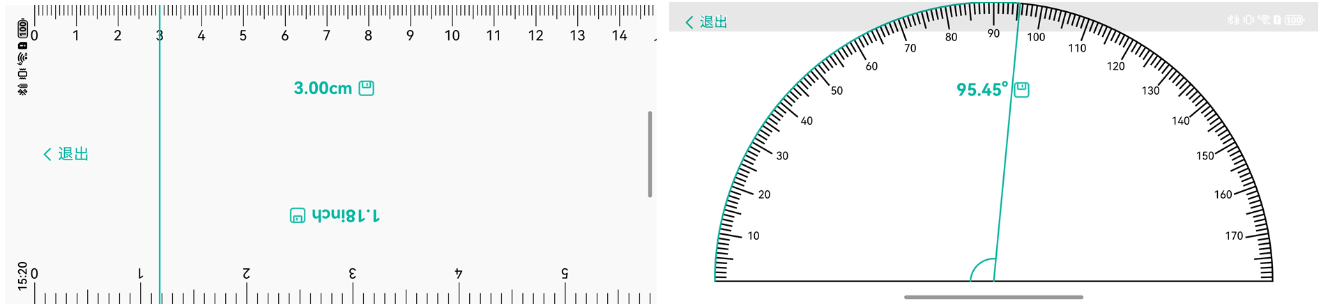 - 直尺、量角器:通过移动指针可以标记物体长度与角度值,其中直尺支持厘米刻度与英尺刻度的记录,量角器支持角度值的记录,并且均可以对记录进行保存。