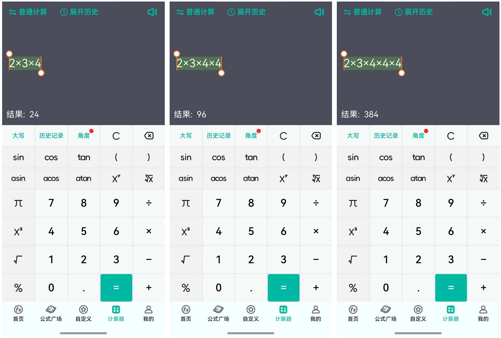 七、计算器模块的连续计算功能: