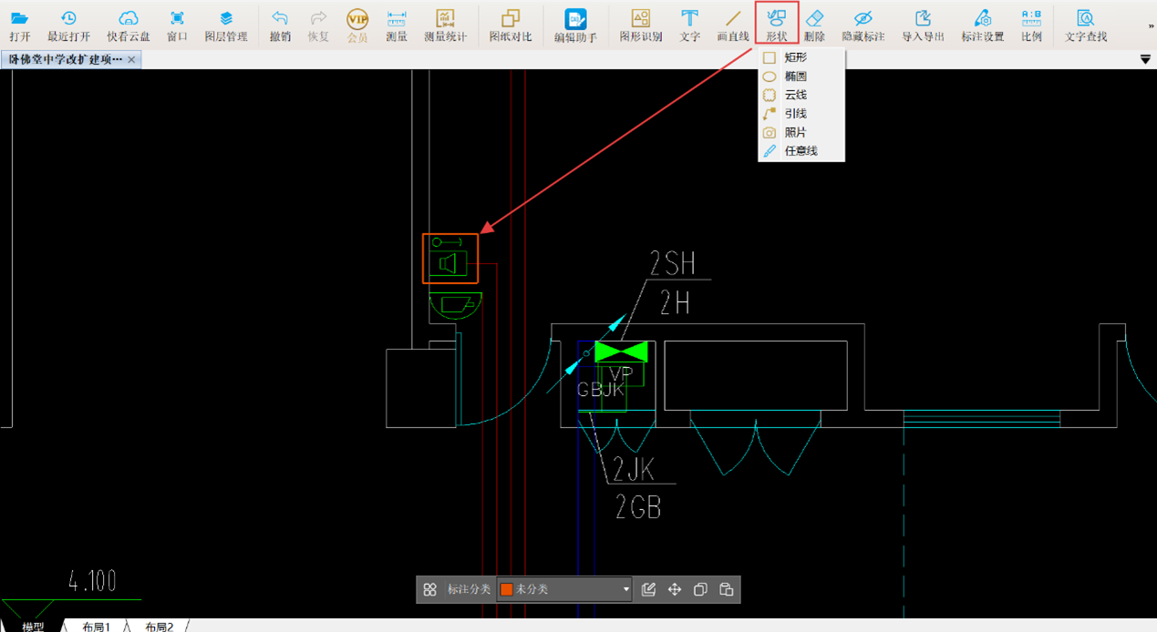 【批量测量】、【形状】、【标注设置】等功能,能够快速、精准地辅助我们计算配线工程的工程量。例如,【批量测量】功能可一键统计多条线路长度;【形状】功能能精准标注图纸细节,突出呈现关键信息;【标注设置】则可将测量结果分类归档,便于复查与统计。这些功能大幅降低了手算的时间成本与错误风险,显著提升了我们的工作效率与结果准确性。