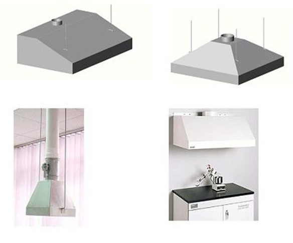 (4)接受式排风罩。有些生产过程或设备本身会产生或诱导一定的气流运动,如高温热源上部的对流气流等,对这类情况,只需把排风罩设在污染气流前方,有害物会随气流直接进入罩内。