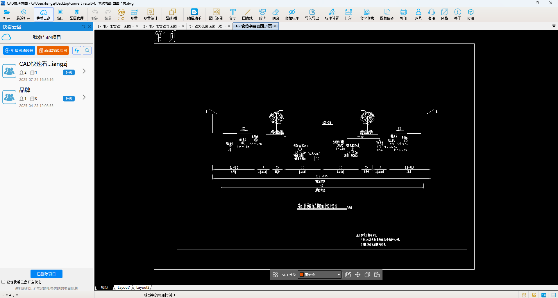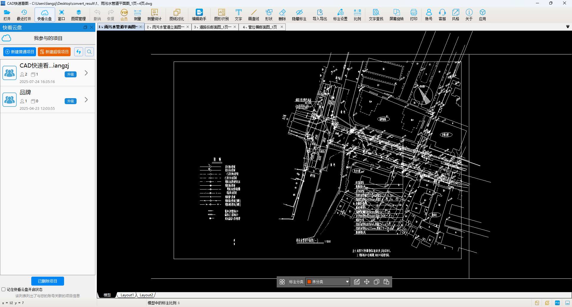 转换在瞬间完成。在指定的文件夹中找到了可直接使用的综合管网图.dwg文件。