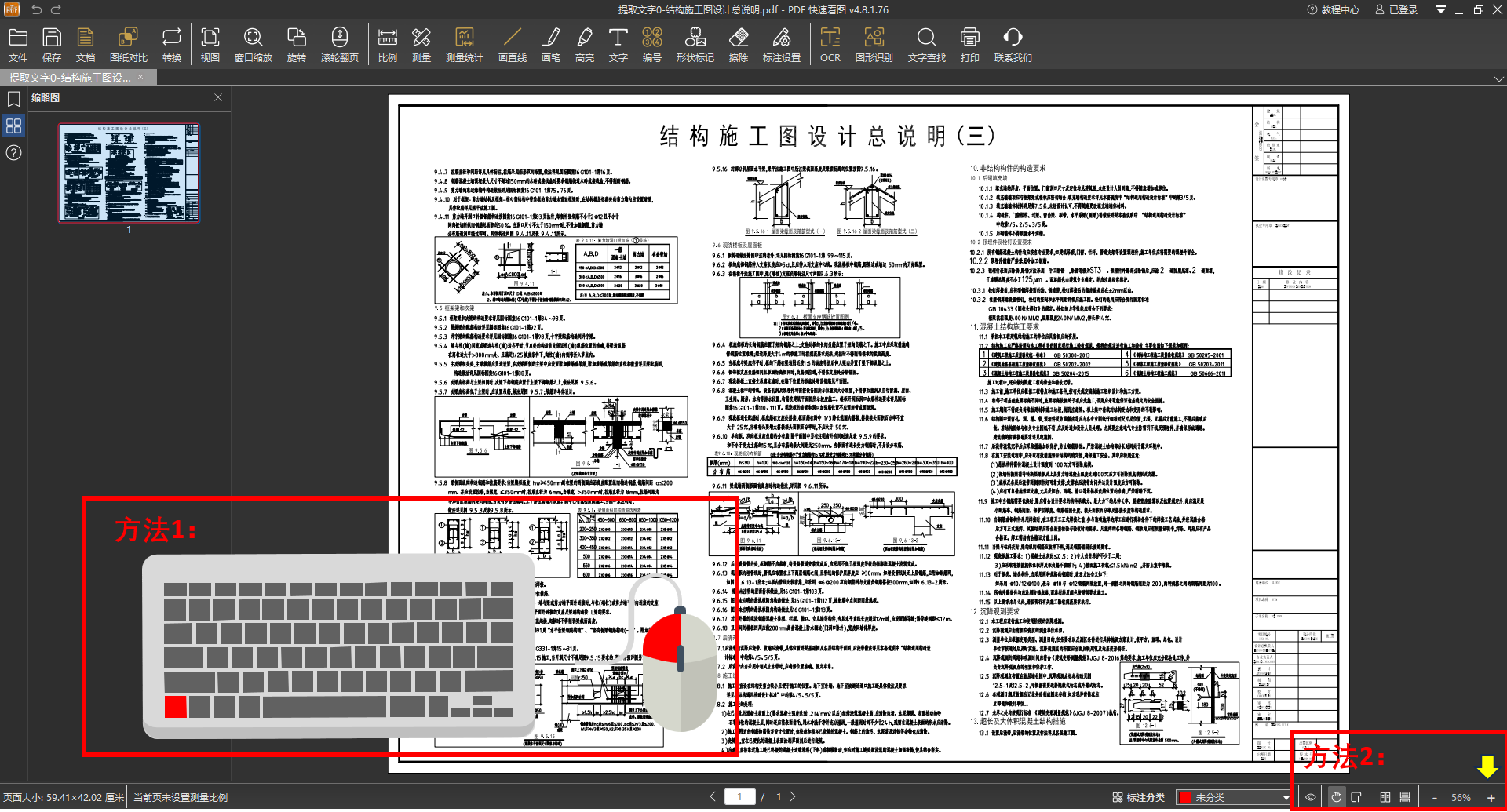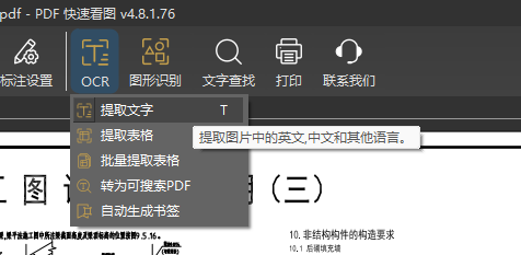 使用「PDF快速看图」打开包含文字内容的PDF图纸。