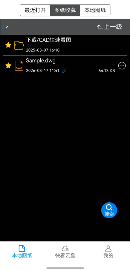 也可以直接打开CAD快速看图,点右下角“搜索”功能,搜一下这个图,能搜到就可以直接打开了